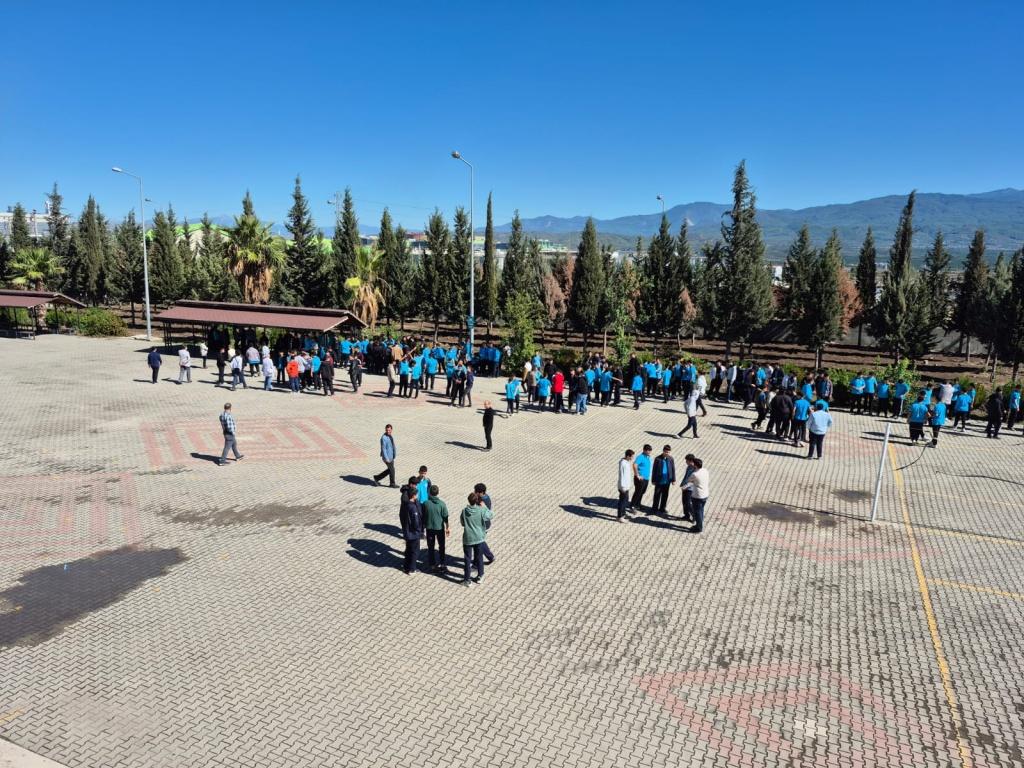 Müdürmüz Eyüp Hakan DİNGİL tatbikat sonrasında öğrencilere hitaben deprem sırasında ve sonrasında yapılması gerekenler ve AFAD gönüllüsü olmaları konusunda bilgilendirmiştir.